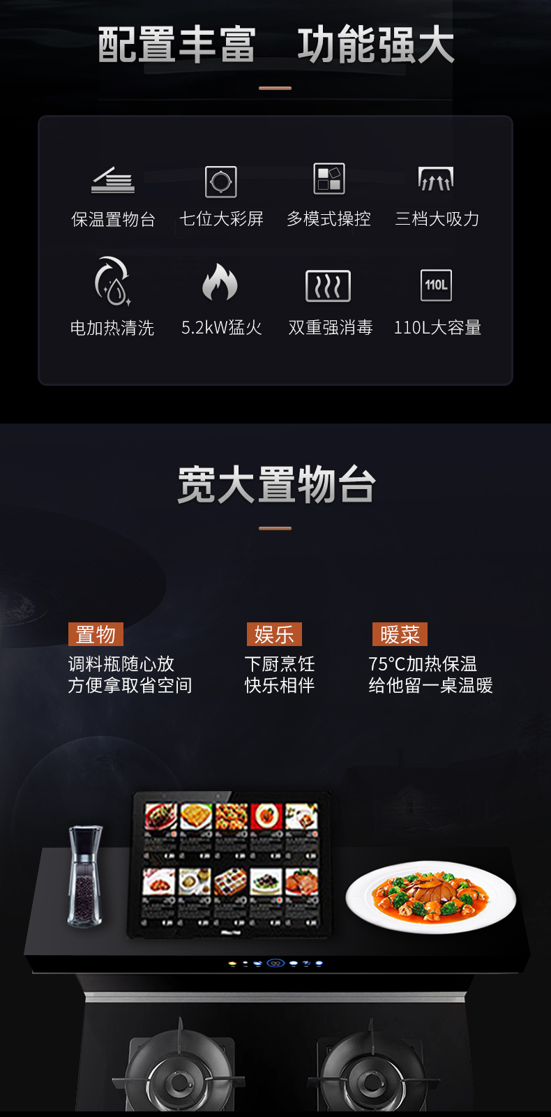 900寬集成灶5.2kW配置消毒柜款