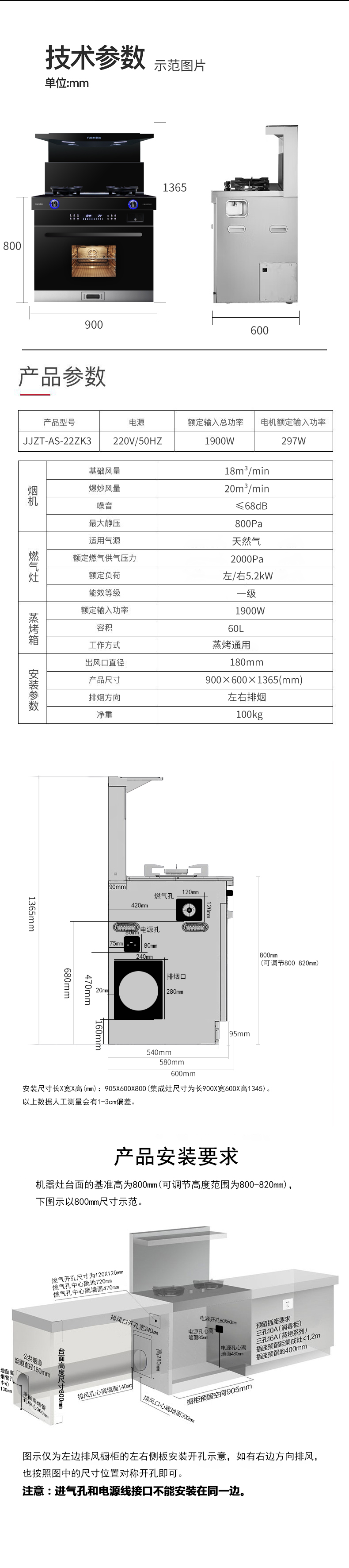 900寬集成灶5.2kW蒸烤箱一體