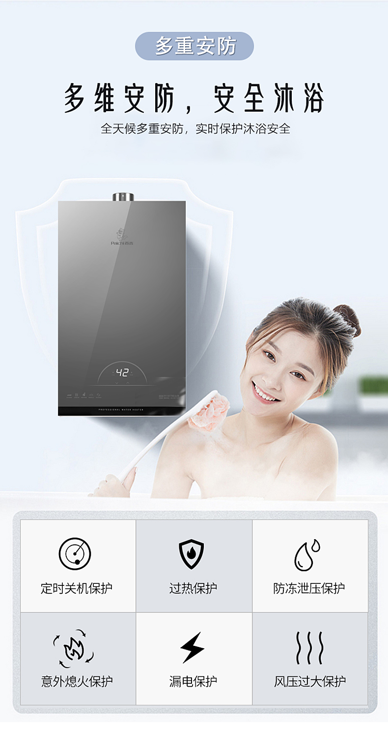 寬頻恒溫 精準控溫 四分段燃燒 無氧銅水箱 深層凈水 多維安防