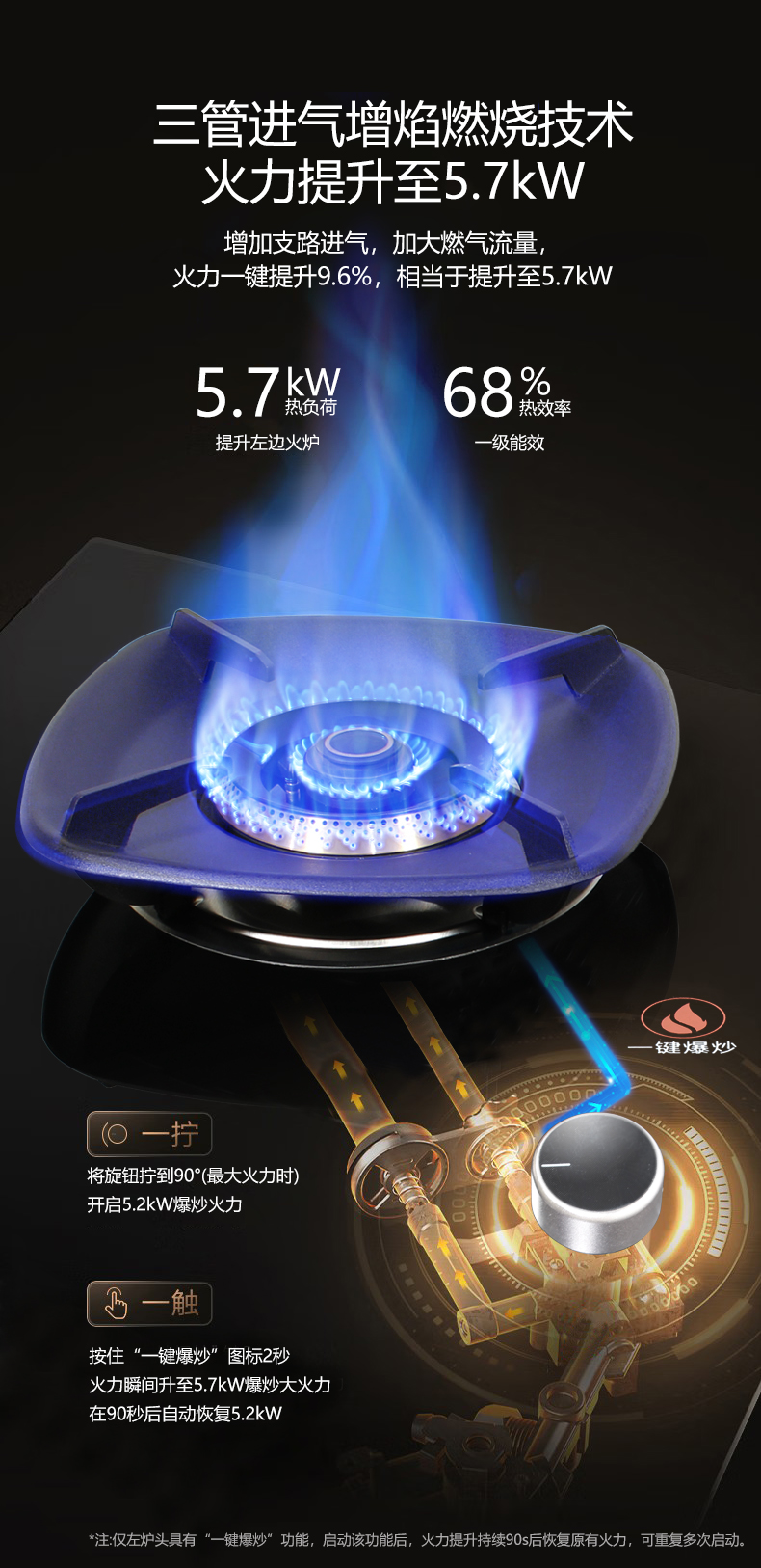 一鍵爆炒5.7kW大火力,68%高熱效率